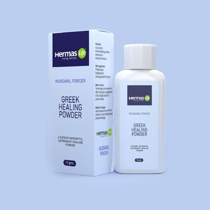 MUNDAMIL- GREEK HEALING POWDER is a mineral-based therapeutic powder meant for application on open wounds and cuts.